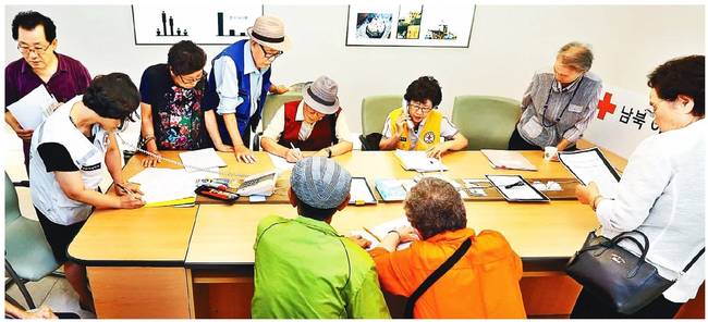 동아일보는 “7일 판문점에서 열릴 이산가족 상봉 남북 실무접촉을 앞두고 31일 서울 중구 대한적십자사 이산가족 민원실에서 실향민들이 서류를 쓰고 있다”며 “정부는 지난달 21일부터 이산가족을 상대로 명단 확인과