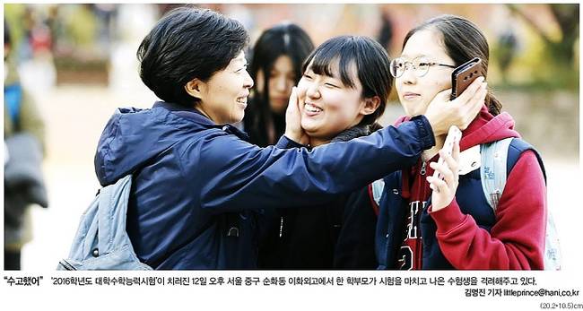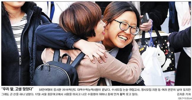 한겨레신문은 “12일 시행된 2016학년도 대학수학능력시험이 ‘쉬운 수능’ 기조를 유지하긴 했으나 ‘물수능’ 논란이 일었던 지난해에 비해선 다소 어려웠던 것으로 분석됐다”며 “다만 지난해 이례적으로 어려웠던 국어 B형은 약간 쉽거나 비슷하게 출제됐다는 평가”라고 전했다.