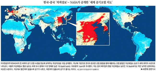 서울의 이산화질소 평균 농도는 세계 도시 중에서 다섯 번째로 높은 18.6ppb(1ppb는 1000분의 1ppm)로 조사됐다. 이는 중국 베이징의 평균 이산화질소 농도인 19.9ppb보다는 약간 낮지만 상하이와는 비슷한 수준이다.