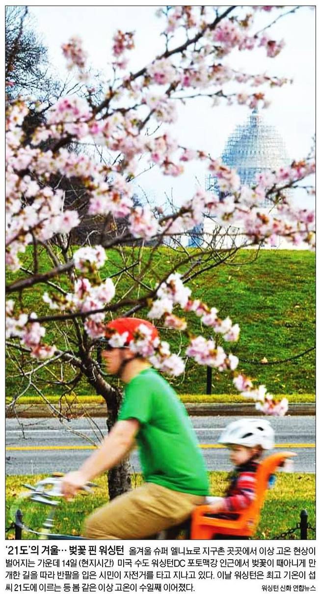 이날 워싱턴은 최고 기온이 섭씨21도에 이르는 등 봄 같은 이상 고온이 수일째 이어졌다.