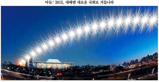 국민일보는 "올해 국회는 역대 최악의 '무위(無爲) 국회'라는 오명을 남길 전망이다. 발의법안 1만7222건 가운데 가결 법안이 5449건으로 역대 최저 가결률(31.6%)을 기록했다"며 "사진은 지난 27일 여의도 국회의사당을 지나는 태양을 일출에서 일몰까지 20분 간격으로 다중 촬영한 뒤 야경과 합성한 모습. 캄캄한 어둠을 뚫고 떠오르는 해처럼 국회가 내년 총선을 계기로 새롭게 태어나길 기대한다"고 전했다.