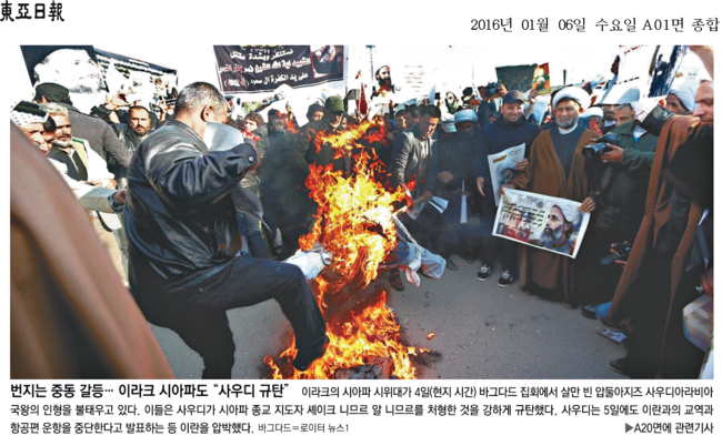 동아일보도 “이라크의 시아파 시위대가 바그다드 집회에서 사우디아라비아 국왕의 인형을 불태웠다”며 “사우디는 이란과의 교육과 항공편 운항을 중단한다고 발표하는 등 이란을 압박했다”고 전했다.