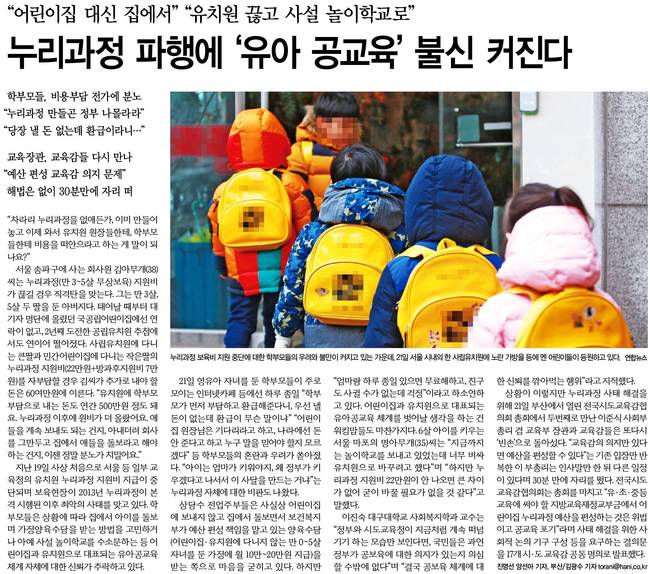 지난 19일 사상 처음으로 서울 등 일부 교육청의 유치원 누리과정 지원비 지급이 중단되며 보육현장이 2013년 누리과정이 본격 시행된 이후 최악의 사태를 맞고 있다고 한겨레는 전했다.