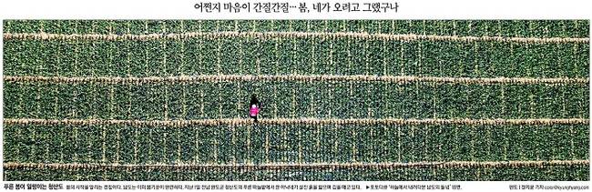 봄의 시작을 알리는 경칩이다. 경향신문은 하늘에서 내려다본 남도의 들녘을 1면 사진으로 전했다. 경향신문은 “남도는 이미 봄기운이 완연하다”며 “지난 1일 전남 완도군 청산도의 푸른 마늘밭에서 한 아낙네가 살진 흙을 밟으며 김을 매고 있다”고 보도했다.