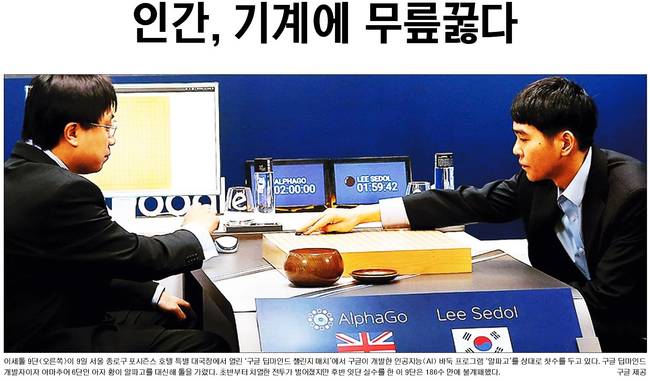 경향신문은 "20년 전 체스가 슈퍼컴퓨터에 무릎을 꿇은 것은 10수까지 내다보는 인간의 한계가 12수까지 내다보는 슈퍼컴퓨터의 벽을 넘지 못했기 때문"이라며 "그런 상황이 인간이 만든 가장 복잡하고 창의적인 게임이라는 바둑에서도 벌어졌다. 이는 곧 기계도 인간만큼 창의적 사고에 가까운 반응을 보일 수 있다는 사실을 방증한다. 그야말로 기계의 인간 극복"이라고 보도했다.