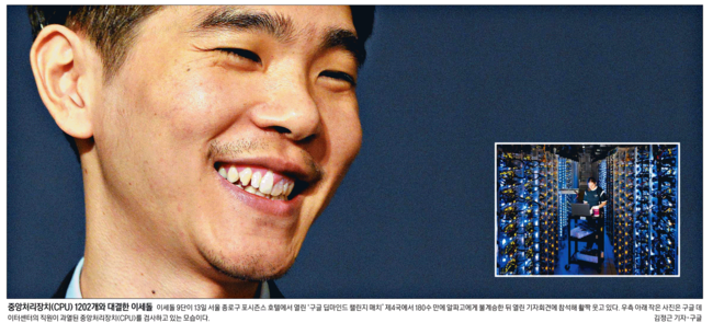 중앙일보도 이날 대전의 풍경을 자세히 보도했다. 중앙은 “중반 백병전이 치열해지면서 이 9단은 일찌감치 초읽기에 들어갔다. 1초를 남기고 간신히 돌을 놓는 이 9단의 손이 떨렸다”고 설명했다. 이어 “하루 3만 개의 기보를 스스로 학습하고 1200여개의 CPU(중앙처리장치)를 장착한 채 중앙 두터움까지 계산하면서 최적의 수를 찾아내는 알파고는 감히 인간이 넘볼 수 없는 바둑의 신처럼 다가왔다”고 강조했다.