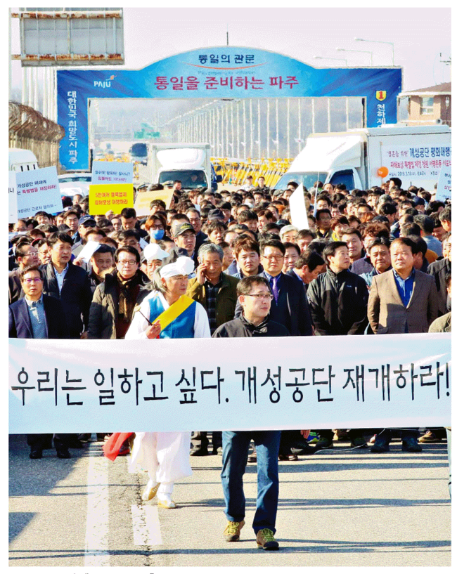 이날 한겨레신문은 개성공단 임직원의 거리 행진 모습을 1면 사진에 담았다. 한겨레는 “개성공단 입주기업과 협력업체 임직원들이 16일 오후 개성공단 폐쇄로 인한 피해 보상과 개성공단 재가동을 촉구하며 경기도 파주시 임직각에서 통일대교 남단까지 '개성공단 평화 대행진'을 하고 있다”고 관련 소식을 전했다. 한겨레는 “이들은 개성공단 피해보상 특별법 제정을 위한 청원운동에 참여해줄 것을 시민들에게 호소했다”고 덧붙였다.