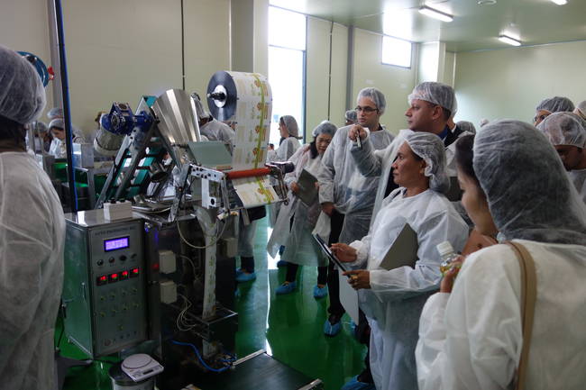 ▲세계평화기자포럼 셋째 날인 20일 각국의 기자들의 안동 웰츄럴 공장을 방문해 가공 과정을 지켜보고 있다. (김달아 기자)
