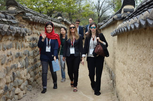 ▲세계평화기자포럼 셋째 날인 20일 각국의 기자들의 안동 하회마을의 풍경을 즐기고 있다. (김달아 기자)