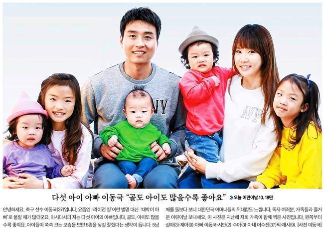 중앙일보는 어린이날을 맞아 이동국 축구 선수의 가족사진을 담았다.