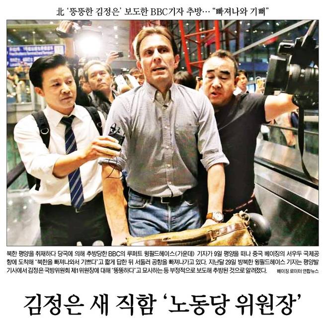 서울신문은 북한을 취재하다 당국에 의해 추방당한 BBC 기자의 모습을 1면에 담았다. 서울신문은 "(김정은이 당 위원장을 맡게 된 것에 대해) 북한 권력의 양대 축인 당과 군에서 절대적인 지위를 구축했다는 평가가 제기된다"며 "이번 당 대회 개최가 김 제1위원장의 리더십을 제도적으로 공고화하는 데 초점을 맞춘 만큼 당을 대표하는 데 걸맞은 명칭이라는 분석이 나온다"고 평했다.