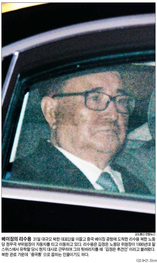 이날 또 다른 상당수 주요 일간지들은 리수용 북한 노동장 정무국 북위원장이 31일 중국을 방문한 사실을 다뤘다.