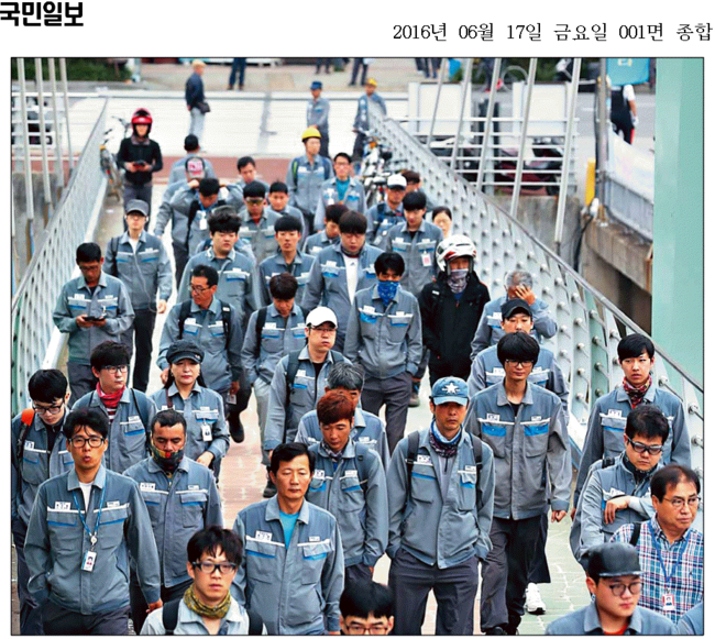 이날 국민일보는 대우조선해양 직원들의 무거운 출근길 모습을 1면 사진으로 보도했다. 국민은 “회사 돈 180억원을 횡령한 대우조선해양 임모 전 차장 사건 등으로 뒤숭숭한 가운데 대우조선해양 직원들이 침울한 표정으로 경남 거제 조선소로 출근했다”며 “대우조선해양 노동조합은 지난 14일 파업 찬반투표에서 압도적으로 파업을 결의했다”고 전했다.