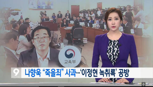 ▲국회 상임위 관련 소식 중 하나로 ‘뉴스9’을 통해 전해진 <나향욱 “죽을죄” 사죄…‘이정현 녹취록’ 공방> 리포트. (KBS 홈페이지 갈무리)
