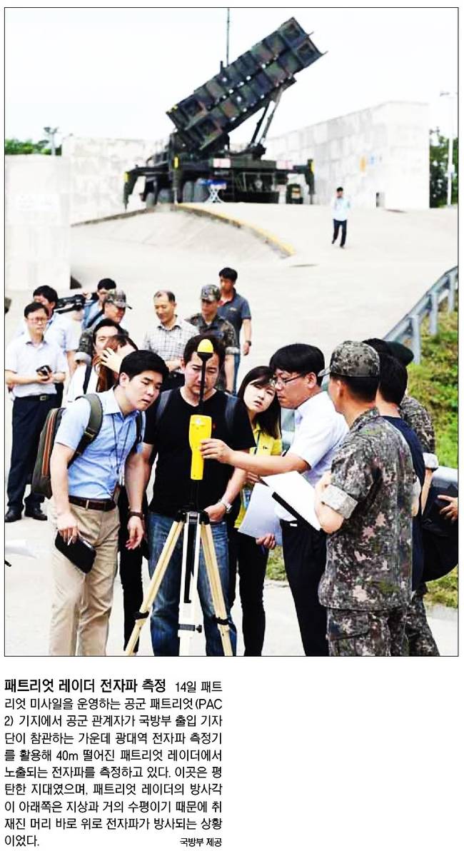 서울신문, 조선일보, 한국일보는 14일 패트리엇 미사일을 운영하는 공군 패트리엇(PAC2) 기지에서 공군 관계자가 국방부 출입기자단이 참관하는 가운데 광대역 전자파 측정기를 활용해 40m 떨어진 패트리엇 레이더에서 노출되는 전자파를 측정하고 있는 모습을 실었다.