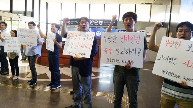 KBS 기자들은 인사발령이 난 당일 KBS경인방송센터 평기자들의 성명서를 시작으로 하룻밤 새만 다섯 개 기수(33·35·39·41·42기)가 연명 성명을 보도정보게시판에 올렸다. 19일 현재 부당인사 철회를 요구하는 연명 성명을 낸 기수는 열여섯 기수(최고 11기~최저 43기)에 달한다.