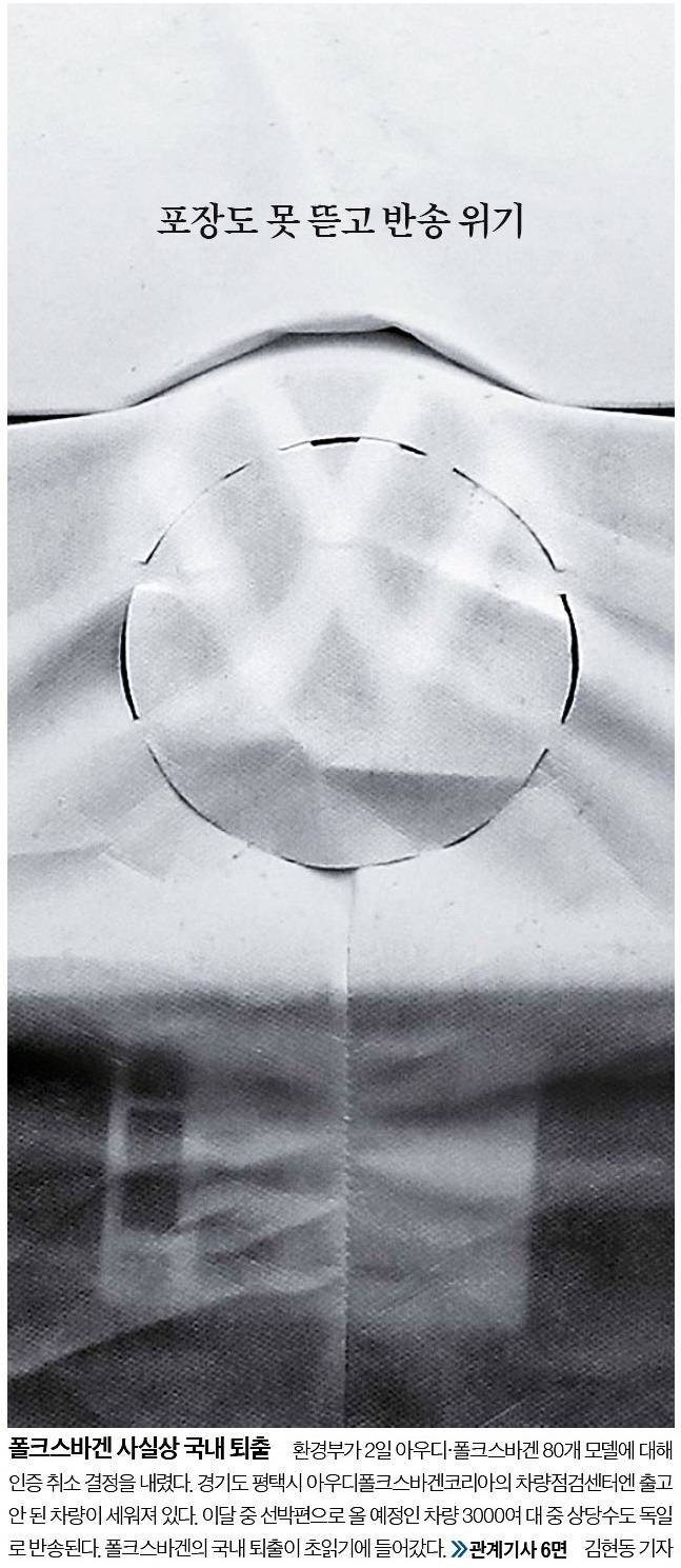 중앙일보는 경기도 평택시 아우디폴크스바겐코리아 차량점검센터에서 출고 안 된 차량이 세워져 있는 모습을 1면에 담았다.