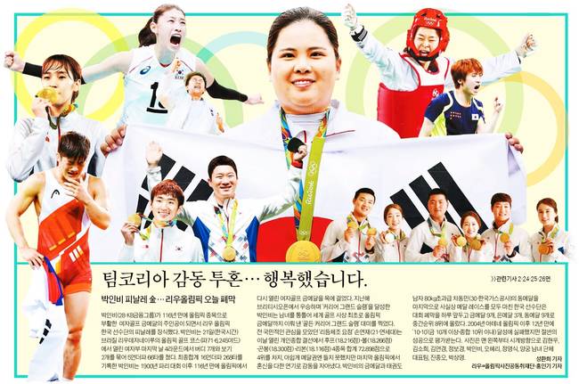 국민일보, 동아일보, 서울신문도 박 선수가 리우 올림픽 여자골프 마지막 라운드에서 우승한 뒤 두 팔을 높이 들며 기쁨을 만끽하고 있는 장면을 전했다.