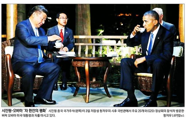 경향신문은 "오바마 대통령이 시진핑 주석과 만나 4시간 넘게 마라톤 정상회담을 했다. 오바마가 항저우에 도착하는 순간부터 의전을 놓고 신경전을 벌인 양측은 이날 회담에서 사드, 남중국해 영유권 문제 등을 논의했으나 견해 차를 줄이지 못했다"며 "시 주석은 오바마 면전에서 사드 한반도 배치에 반대했고, 오바마는 중국 인권 문제를 꺼냈다"고 설명했다.