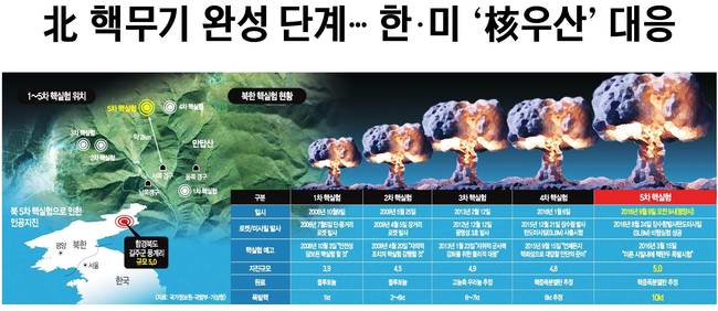 조선일보는 "문제는 우리 정부는 물론이고 미국과 중국도 북핵에 대응할 마땅한 수단을 찾지 못하고 있다는 점"이라며 "박 대통령은 이날 북한 핵실험 직후 버락 오바마 미국 대통령과 통화해 양국 공조 방안을 논의했지만 눈에 띄는 대책은 나오지 않았다. 정치권 일부에서 미국의 전술핵 재배치, 독자 핵무장론 등이 나오는 이유"라고 덧붙였다.