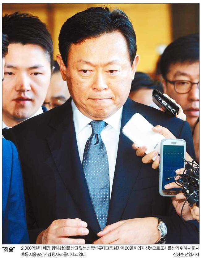 롯데그룹 신동빈 회장이 검찰에 피의자 신분으로 소환돼 조사받은 것도 주요 일간지들의 1면을 채운 소식이었다.