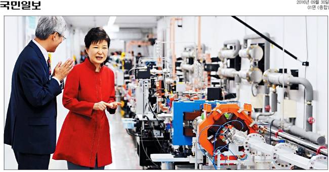 국민일보는 “생명 현상의 비밀을 푸는 ‘슈퍼 현미경으로 불리는 4세대 반사광가속기는 신약, 바이오 등 분야의 신성상 동력이 될 것으로 기대되고 있다”며 이날 준공식에 참석해 4세대가속기 운영단장으로부터 가속기에 대한 설명을 듣고 있는 박근혜 대통령의 모습을 1면에 담았다.