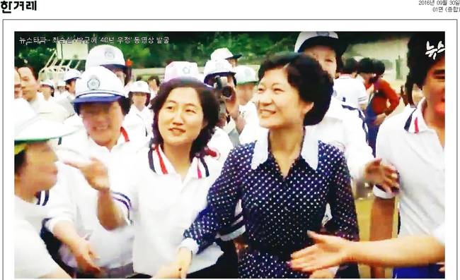 한겨레는 ‘박대통령-최순실 우정...37년전 영상 공개돼’라는 제목의 사진을 1면으로 보도했다. 한겨레에 따르면 인터넷 독립언론 뉴스타파는 1979년 6월10일 서울 한양대 교정에서 열린 제1회 새마음 제전에 참가한 박 대통령과 최순식씨의 모습을 공개했다. 박 대통령은 당시 새마음봉사단 총재로, 최순실씨는 새마음대학생총연합회 회장으로 참가했고, 두 단체는 최순실씨의 아버지 최태민 목사가 설립하고 본부장을 맡았던 새마음갖기운동본부의 산하조직 이었다.