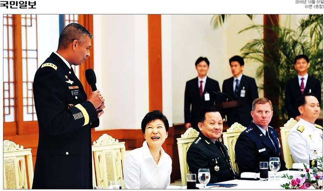 1일 국민일보와 동아일보, 세계일보 등 조간신문은 박근혜 대통령의 모습을 1면 사진에 실었다. 국민일보는 “박 대통령이 30일 청와대에서 열린 주한미군 주요 장성과의 오찬에서 빈센트 브룩스 한미연합사령관 겸 주한미군사령관의 인사말을 들으며 환하게 웃었다”고 전했다.