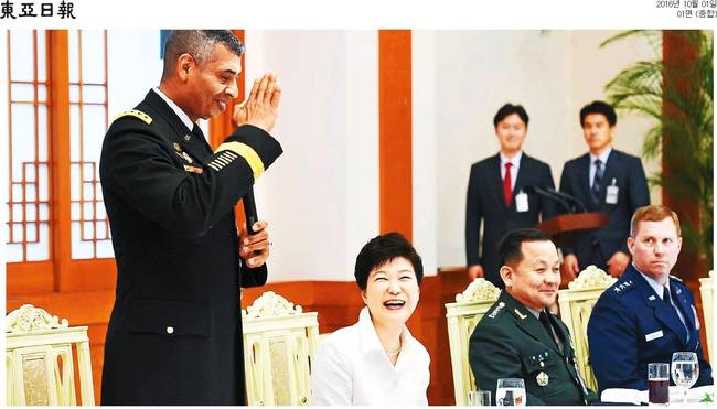 동아일보도 관련 소식을 전하며 “빈센트 브룩스 주한미군사령관이 30일 청와대 오찬장에서 ‘함께 갑시다’라는 한국말로 인사말을 맺은 뒤 거수경계를 하자 박 대통령이 활짝 웃었다”며 “박 대통령은 주한미군 장성을 대상으로 청와대 오찬을 주재해 ‘주한미군은 한국의 특별한 친구’라고 말했다”고 전했다.