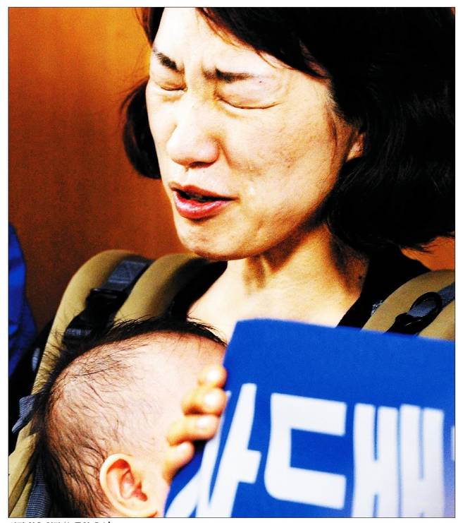 이날 경향신문은 국방부가 성주골프장에 고고도미사일방어체계(사드)를 배치하기로 한 결정을 철회해달라고 눈물로 호소하고 있는 아기 안은 엄마 사진을 1면에 보도했다. 경향은 “국방부가 성주골프장에서 사드포대 배치 방침을 확정하며 당초 성주군 성산포대가 사드 배치 최적지라고 했던 입장이 29일만에 뒤집혔다”고 설명했다.