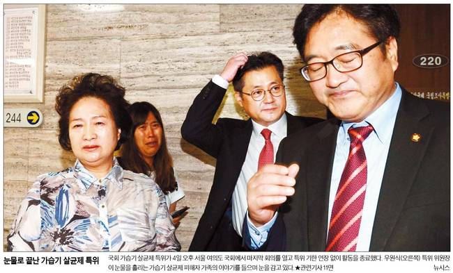 한국일보는 "국회 가습기 살균제 특위가 4일 오후 서울 여의도 국회에서 마지막 회의를 열고 특위 기한 연장없이 활동을 종료했다"고 전했다.