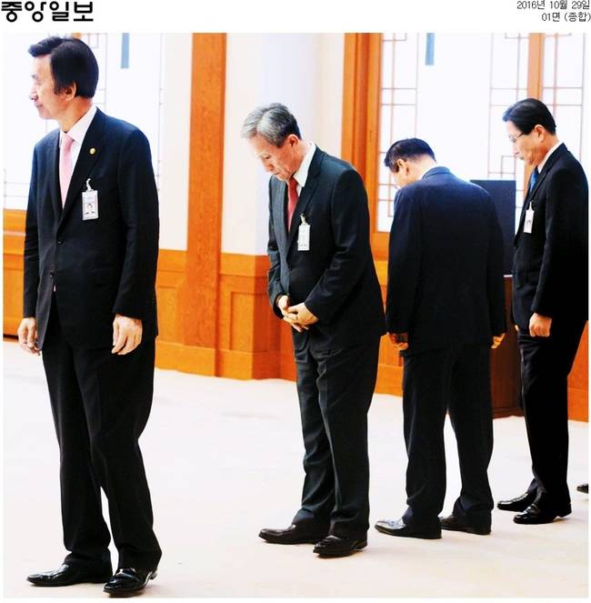 동아일보는 “최씨 국정 개입 의혹 확산으로 청와대 비서진과 내각에 대한 인적 쇄신 요구가 높아지는 가운데 박 대통령이 28일 밤 수석 비서관 전원에게 사표를 제출하라고 지시했다”며 “정치권에서는 최씨 연루 의혹이 제기된 우병우 민정수석, 안종범 정책조정수석, 정호성 부속비서관과 정무적 책임이 있는 이 실장, 김재원 정무수석 등이 교체될 가능성이 있는 것으로 보고 있다”고 보도했다.