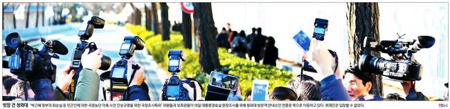 경향신문은 '박근혜 정부의 최순실 등 민간인에 의한 국정농단 의혹 사건 진상규명을 위한 국정조사특위' 위원들과 보좌관들이 16일 대통령경호실 현장조사를 위해 청와대 방문객 안내소인 연풍문 쪽으로 이동하고 있는 모습을 취재진들이 찍는 장면을 담았다.