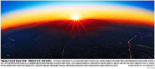 서울신문은 서울시 성동구 성수동 이마트 본사 건물에서 서울시내를 배경으로 떠오르는 해를 촬영한 사진을 1면 사진으로 선택했다. 서울은 관련기사에서 “차기 대통령이 갖춰야 할 덕목으로 국민 3명 중 1명은 ‘소통 및 사회통합 능력’을 꼽았다”면서 “차기 대선후보 선호도에서는 반기문 전 유엔사무총장(21.7%)과 문재인 전 더불어민주당 대표(18.5%)가 오차범위 내 접전인 가운데 이재명 성남시장(11.5%)이 뒤를 쫓는 ‘2강1중’ 구도로 나타났다”고 게재했다.
