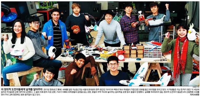 조선일보는 새해를 앞둔 지난달 27일 서울대 공대생의 창작 공간인 ‘아이디어 팩토리’에서 학생들이 직접 만든 로봇을 들고 파이팅을 외치는 모습을 신문 전면에 배치했다. 조선은 관련기사에서 “1987년 민주화운동과 대통령 직선제 개헌으로 탄생한 ‘87년 체제’가 올해로 30년을 맞이한다”면서 “정치의 ‘87년 체제’와 경제의 ‘97년 모델'은 정치에서는 민주화, 경제에서는 위기 극복이라는 시대적 역할을 해냈지만 이제는 한계에 봉착했다는 지적이 많다”면서 “이제 대한민국이 새롭게 도약하기 위해 정치경제 시스템을 근본적으로 바꾸는 일에 사회 전체가 좀 더 적극적으로 나서야 할 때”라고 강조했다.