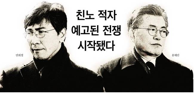한국일보는 문재인 전 민주당 대표와 안희정 충남지사의 모습을 1면에 담고 "대선 가도에서 이들의 전쟁은 피할 수 없는 대결"이라고 분석했다.