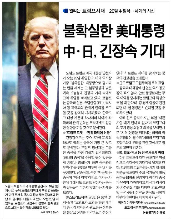 ▲동아일보 18일자 1면 사진.