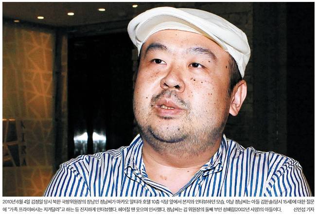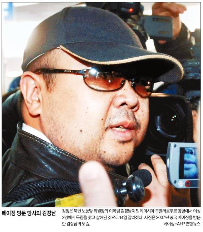 중앙일보는 2010년 김정남이 중앙과 인터뷰 했을 당시의 사진을 1면에 배치했다. 중앙은 관련기사에서 “김정남이 왜 말레이시아로 갔는지는 확인되지 않고 있다. 하지만 한국 정보 당국은 그의 내연녀가 말레이시아에 있어 그가 수시로 이곳을 다녀간 것으로 파악하고 있다. 김정남은 2014년 1월 쿠알라룸푸르에 있는 한국식당에서 목격되기도 했다”고 보도했다. 또 “대북 소식통은 ‘이명박 정부 때 한국 망명을 타진한 적이 있는 김정남이 최근 또 다시 망명을 타진했으며, 북측이 이를 막으려 살해했다는 얘기가 있다’며 ‘말레이시아는 북한 고위급 인사의 망명루트 중 하나’라고 주장했다”고 보도했다.