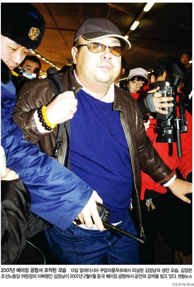 조선일보와 한겨레신문은 2007년 김정남 베이징 방문 당시 공항검색대을 받는 모습을 대문사진으로 선택했다. 조선은 관련기사에서 “우리 당국은 김정은이 잠재적 경쟁자를 제거하기 위해 이복형인 김정남을 독살했을 가능성이 높은 것으로 보고 관련정보를 수집·분석하고 있다”면서 “2013년 12월 김정은이 고모부 장성택을 공개처형한 지 3년 만에 다시 이복형 김정남이 피살되면서 정부는 북한 내부 동향에 촉각을 곤두 세우고 있다”고 게재했다.