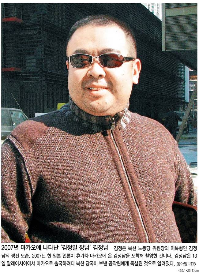 동아일보는 2007년 마카오를 방문한 김정은의 사진을 대문사진으로 선택했다. 동아는 관련기사에서 “14일 김정남 피살 소식이 전해지면서 북한 김정은 체제가 안정적으로 보였던 겉보기와는 달리 내부에서 복잡한 암투가 벌어지고 있는 게 아니냐는 관측이 제기된다”며 “지금은 외국까지 가서 김정남을 제거할 만큼 김정은의 권력이 위협받고 있다고 보기 어려운 상황이었기 때문”이라고 보도했다.