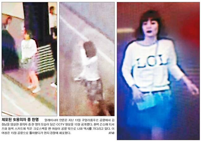 말레이시아에서 김정은 북한 노동당 위원장의 이복형인 김정남을 암살한 용의자가 체포됐다. 언론들은 말레이시아 경찰 당국이 15일 쿠알라룸푸르 공항에서 베트남 여권을 소지한 여성 1명을 체포하고 나머지 여성 공범 1명과 남성 4명을 쫓고 있다고 전했다. 16일 모든 주요 일간지들은 김정남 암살 용의자 체포 소식과 용의자 사진 등을 신문 1면에 배치했다.