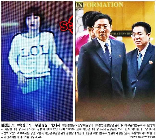 조선일보도 CCTV에 찍힌 용의자의 모습을 신문 전면에 내걸었다. 조선은 관련기사에서 “북한 김정은 노동당 위원장의 이복형인 김정남이 암살되면서 미·북 관계는 물론 북·중 관계도 급속도로 얼어붙고 있다”면서 우리 정부 관계자를 인용, “미국이 김정은을 정상적인 협상 파트너로 상정할 가능성은 완전히 사라졋다고 봐야 한다”고 전했다. 또 “김정남의 신변을 암묵적으로 보호해 온 중국도 이번 사건으로 김정은에 대한 불신이 높아지면서, 북·중 관계는 더욱 냉각될 것으로 전망된다”고 부연했다.