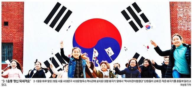 세계일보는 3·1절을 하루 앞둔 28일 서울 서대문구 서대문형무소역사관에 설치된 대형 태극기 앞에 ‘역사어린이합창단’ 단원들이 손에 든 작은 태극기를 흔들며 달리고 있는 모습을 1면 사진으로 전했다. 세계일보는 “3·1절인 1일 서울 도심에서는 대규모 ‘촛불’, ‘태극기’ 집회가 예고돼 있다”며 “헌법재판소 탄핵심판에서 어떤 결정이 나오든 상당한 후유증이 예상된다. 헌재 안팎에서 ‘승복의 문화’를 만드는 일이 절실하다는 요구가 쏟아지는 이유”라고 보도했다.