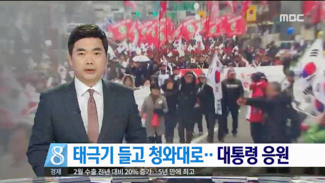 ▲MBC 뉴스데스크는 지난 1일 태극기 집회를 두드러지게 다루며 ‘탄핵 반대 선전 매체’라는 비판을 받았다.