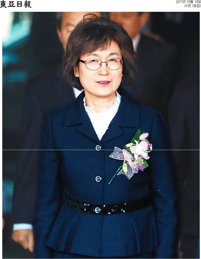 동아일보는 헌재 임기를 마친 이정미 헌법재판소장 권한대행이 서울 종로구 헌재에서 퇴임식을 마친 후 나오고 있는 장면을 1면에 담으며 “이 권한대행은 ‘엊그제 참으로 고통스럽고 어려운 결정을 했다. 진통의 아픔이 클지라도 우리는 헌법과 법치를 통해 더 성숙한 민주국가로 나아갈 수 있을 것이라 믿는다’고 말했다”고 전했다.