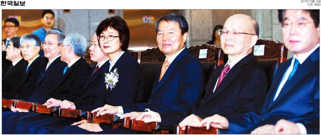 “법의 도리는 처음에는 고통이 따르지만 나중에는 오래도록 이롭다.” 박근혜 대통령을 파면한 탄핵심판의 재판장 이정미 헌법재판소장 권한대행이 13일 퇴임식에서 중국 고전 ‘한비자’의 한 소절을 소개하며 “오늘도 유효할 것”이라고 말했다. 14일 경향신문과 동아일보, 한겨레, 한국일보 등 대다수 조간신문은 이 재판관의 퇴임 소식을 1면으로 보도했다.