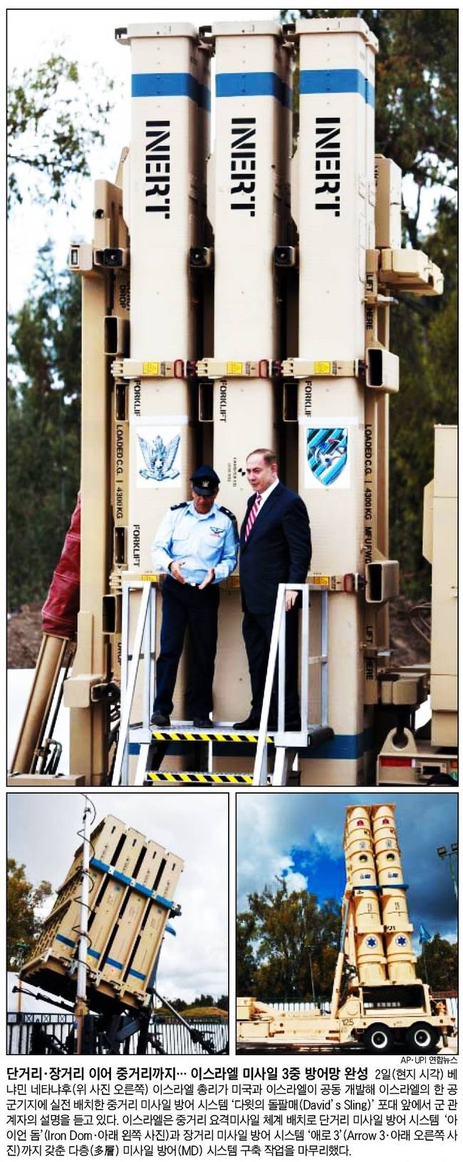 조선일보는 "이스라엘은 중거리 요격미사일 체계 배치로 단거리 미사일 방어 시스템 '아이언 돔'과 장거리 미사일 방어 시스템 '애로3'까지 갖춘 다층 시스템 구축 작업을 마무리 했다"고 전했다.