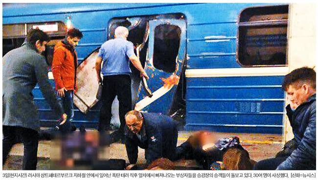 중앙일보는 "3일(현지시간) 테러로 추정되는 지하철 폭발이 일어난 러시아 상트페테르부르크는 블라디미르 푸틴 대통령의 고향이자 정치적 거점"이라며 "특히 푸틴 대통령이 이날 벨라루스 대통령과의 정상회담을 위해 이 도시를 찾은 시기를 노려 사제 폭발물을 열차 내부에서 터뜨린 것이어서 배후가 주목되고 있다"고 전했다.