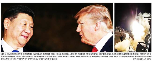 경향신문은 "시리아 미사일 발사명령은 시 주석과의 만찬 직전, 마라라고 임시 ‘상황실’에서 결정됐다"며 "미국은 북한의 핵·미사일에 대해서도 선제타격 같은 군사적 선택을 배제하지 않는다며 위협하고 있다. 이 때문에 시리아 공습은 중국에 대한 무언의 압박으로 비쳐졌다. 러시아의 반대에도 불구하고 미사일 공격을 감행했듯, 북한이 미국을 위협하면 군사작전도 불사하겠다는 메시지를 전한 셈"이라고 보도했다.