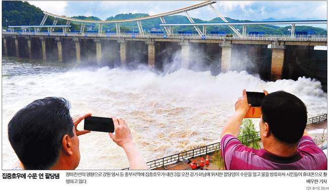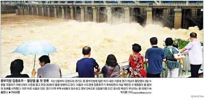 경향신문, 서울신문, 동아일보, 한국일보는 집중호우로 3일 수문을 연 팔당댐의 모습을 신문 전면에 선보였다.